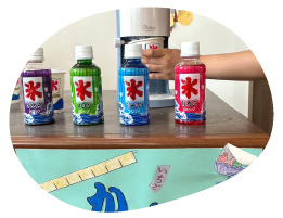 お菓子やジュースを並べて販売し、接客の楽しさを学びます。