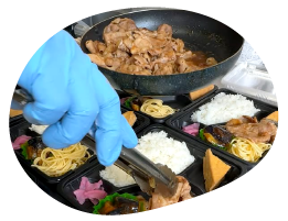 お弁当の盛り付け・販売・配達を通じて、地域に手作りのお弁当を届けます。